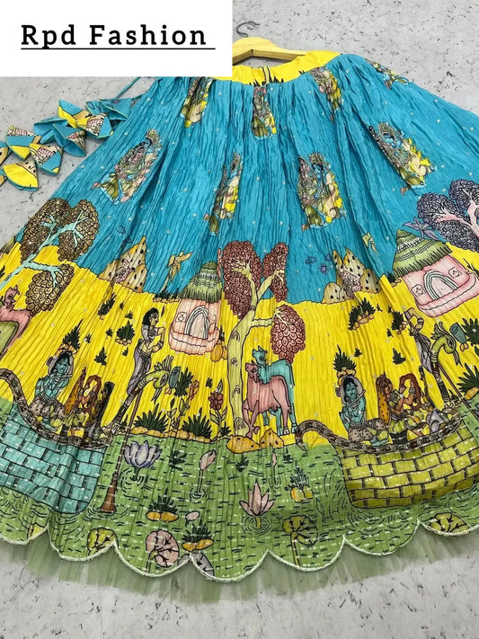 YELLOW AND BLUE KALAMKARI LEHENGA