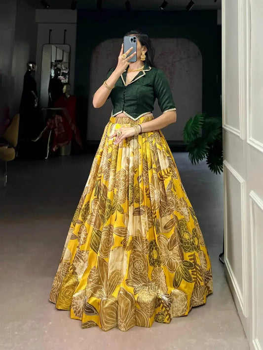 Yellow Color Floral Print Organza Co-ord Set Lehenga Choli