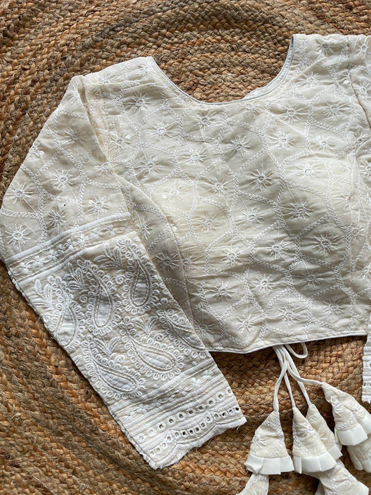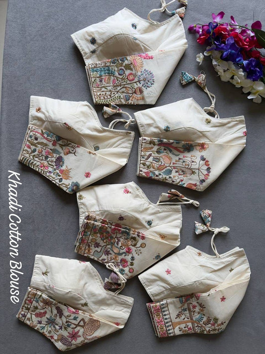 Beautiful Khadi Cotton Chain Stitch Embroidered Blouse