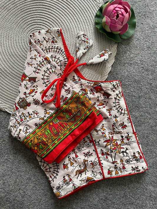 Upgrade your ethnic collection with this beautifully crafted Handblock Cotton Ajrakh Blouse, effortlessly combining style and comfort.