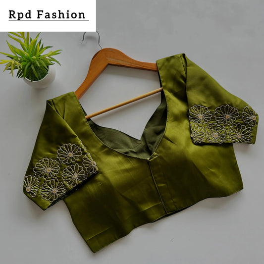 Beautiful Traditional Blouse with Heavy Stitching and Padded Back Open Style