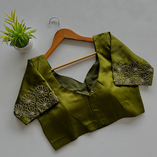 Beautiful Traditional Blouse with Heavy Stitching and Pearl Accents - Padded, Back Open Style
