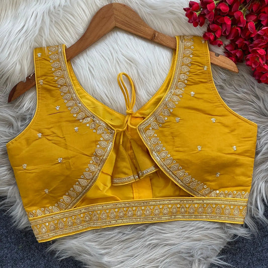 Constructed from premium heavy georgette, this blouse showcases a unique back open style, adding a contemporary twist to a timeless design. The heavy stitching enhances both durability and sophistication, making it a perfect choice for traditional or modern ensembles alike.
