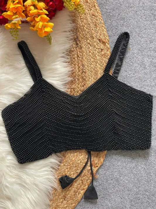 Beautiful Pearl Moti Spaghetti Blouse - Elegant Silk Design