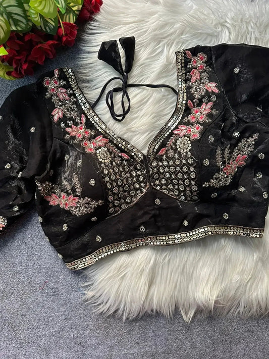 Fabric: Made from premium Heavy Pure Soft Cosmos Silk, this blouse not only feels luxurious against your skin but also drapes beautifully, ensuring comfort and style throughout your special occasions.