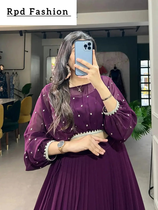 Designer Georgette Stitched Lehenga Set with Sequin Embroidery and Stylish Top – Ideal for Party, Festive, and Wedding Wear