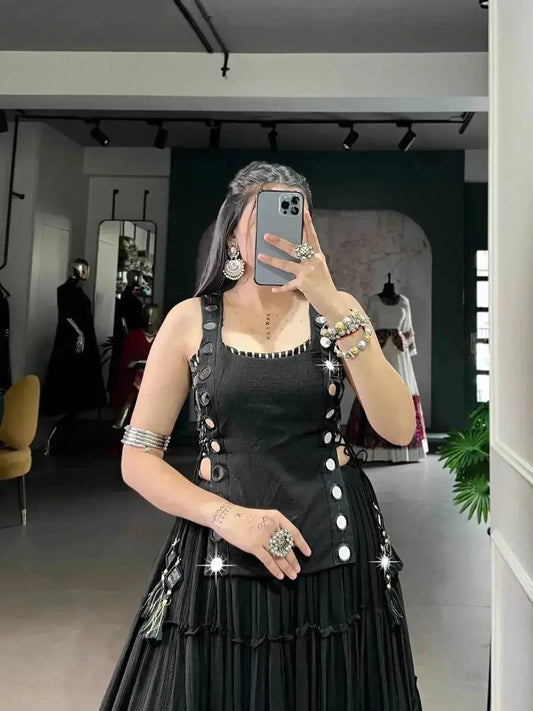 Make a statement during the festive season with our Navratri Collection Black Lehenga Choli. This ensemble not only embodies tradition but also reflects modern elegance. Perfect for dancing the night away and celebrating the spirit of Navratri!