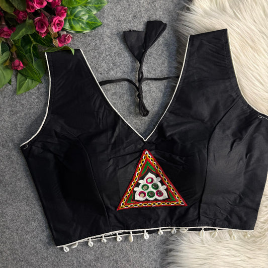 Traditional Navratri Rayon Cotton Blouse with Patch Work