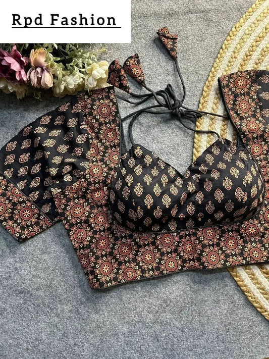 Upgrade your ethnic collection with this beautifully crafted Handblock Cotton Ajrakh Blouse, effortlessly combining style and comfort.