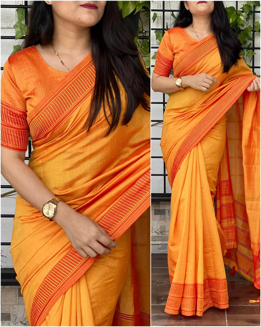 Khadi Cotton Saree and Beauiful Havy Khadi Cotton Blouse
