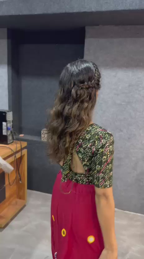 - Unique Back Pattern: The round neck design at the back adds a unique flair, enhancing the overall aesthetic of the blouse.