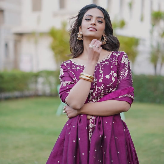 This Beautiful Designer Wine Vichitra Silk Lehenga Choli offers an exquisite blend of comfort, style, and grace, making it an ideal choice for weddings, parties, and festive celebrations.