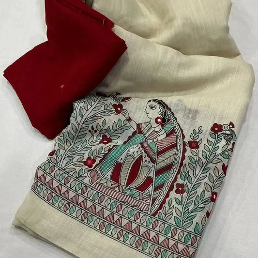 Beats Hand Work Digital Printed Pure Tusser Cotton Saree with Blouse